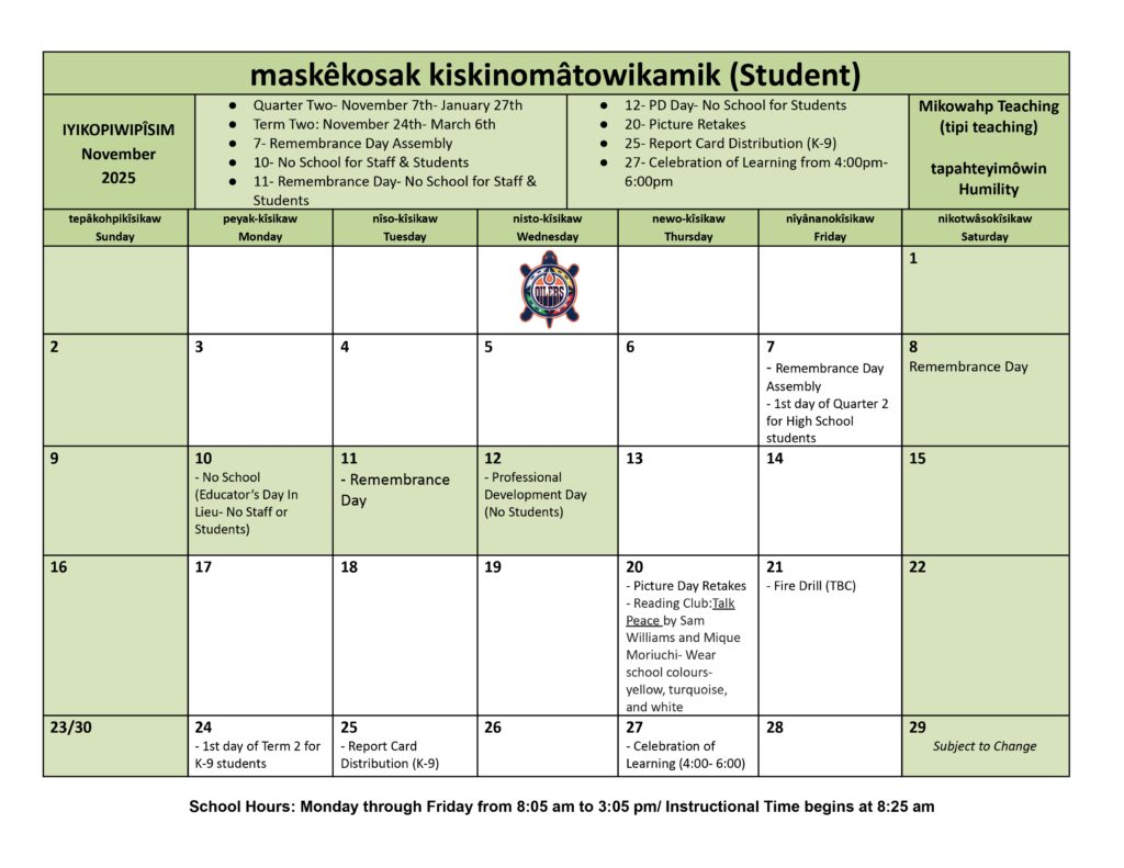 maskêkosak kiskinomâtowikamik is located in Treaty 6 Territory on Enoch Cree Nation. We serve students from play school to grade 12. We develop learning skills while integrating our nêhiyaw perspectives into all areas of study. Our target is for all learning experiences to build our students and community while meeting and exceeding Alberta Education curriculum standards.